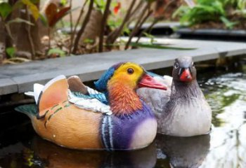 鴛鴦雕塑,水鳥,比鴨小,棲息于池沼之上,雌雄常在一起。民間傳說和文學上用來喻夫妻;又用來稱成偶的東西。以鴛鴦雕塑比作夫妻,出自西漢司馬相如之筆。他為挑逗新寡婦卓文君,作《琴歌二首》,其第一首中有“何緣交頸為鴛鴦雕塑,胡頡頏兮共翱翔”的詩句