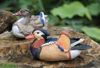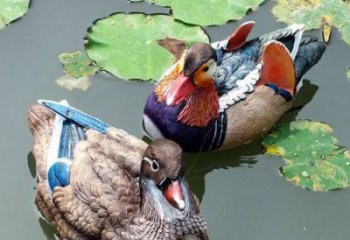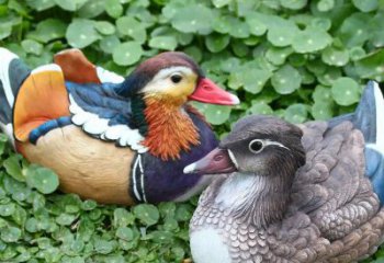 鴛鴦雕塑,水鳥,比鴨小,棲息于池沼之上,雌雄常在一起。民間傳說和文學上用來喻夫妻;又用來稱成偶的東西。以鴛鴦雕塑比作夫妻,出自西漢司馬相如之筆。他為挑逗新寡婦卓文君,作《琴歌二首》,其第一首中有“何緣交頸為鴛鴦雕塑,胡頡頏兮共翱翔”的詩句