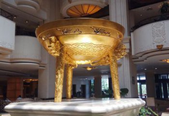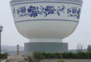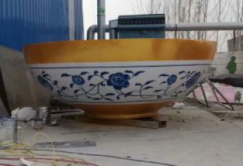 飯碗雕塑的形狀概述;碗口廣闊,寓意海納百川、胸懷廣博,碗口、碗足連續不斷的回紋,象征富貴綿延,腹腔渾圓略外鼓,顯包容宇內、福接天賜之相,整個碗體,造型氣派高貴,構思奇妙,熠熠生輝,是集合皇家氣勢和祥瑞洪福的傳世瑰寶。