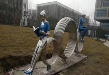 在不知不覺中,校園廣場上又多了一件新品。它是一尊大小合適、造型抽象、不銹鋼材質(zhì)的騎自行車的人物雕塑。
