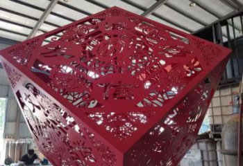 正方體雕塑作為裝飾性雕塑是城市雕塑中數量比較大的一個類型,這一類雕塑比較輕松、歡快,帶給人美的享受,也被稱之為藝術雕塑小品。這種雕塑的鏤空圖案可以是各種文字,具體文字內容根據雕塑的主題確定。