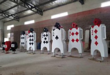 撲克雕塑代指兩種含義:一是指紙牌;二是泛指以用紙牌這種游戲道具來玩的游戲,稱為撲克游戲,如德州撲克。一副撲克牌共有54張牌,其中52張是正牌,另2張是副牌(大王和小王)。