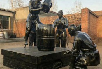 釀酒雕塑寓意酒是喜慶和團圓的象征。在中國傳統文化中,酒常常被用于慶祝節日、婚宴、壽宴等場合。例如,在春節、中秋節等重要節日,人們都會擺上美酒佳肴,與家人團聚,共度佳節。這充分體現了酒在中華民族傳統文化中的地位。酒文化無疑是一顆璀璨的明珠。