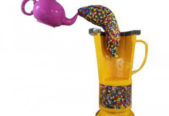整個壺是懸在空中的,從外表看不到任何支撐壺或吊裝的東西。與此原理類似的是下面的懸掛式水龍頭。在失重狀態下,水龍頭似乎懸浮在空氣中,有潺潺的水流出來。“懸掛式水龍頭”下面隱藏著一個透明的塑料管。盆景底部的水沿著透明的塑料管被泵上來然后流下來。